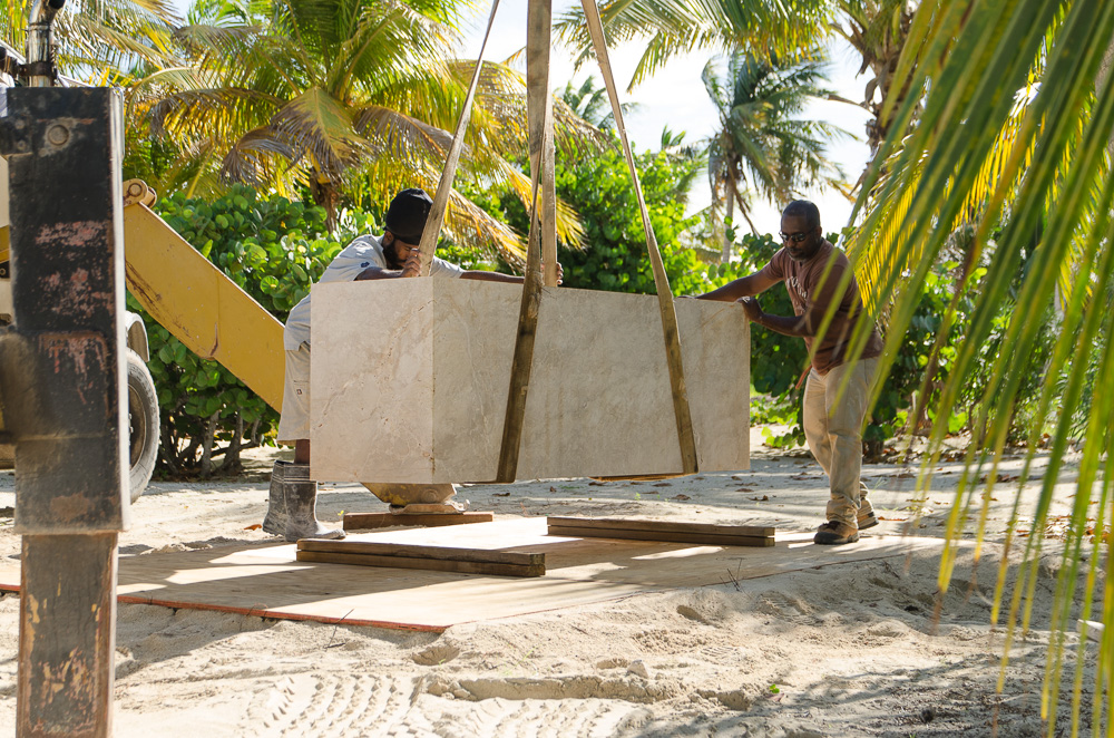 In The Caribbean I carved the tall vertical sculpture during a three week symposium on Anguilla in the Caribbean. The stone is the local coral limestone. We were three sculptors (Alexandra Harley, Jon Barlow Hudson and I) all working with stone from the same quarry. Post navigation Who Will Buy My Dark Dark WorldOn The Edge